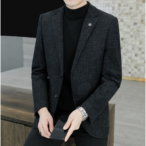 Men's small suit jacket, men's autumn and winter thickened casual business formal wear, middle-aged and young fathers' woolen suit, men's single suit