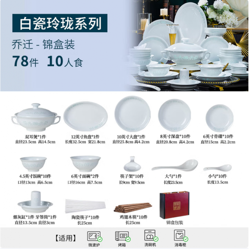 • Product Code: 78件套,适合10人用餐